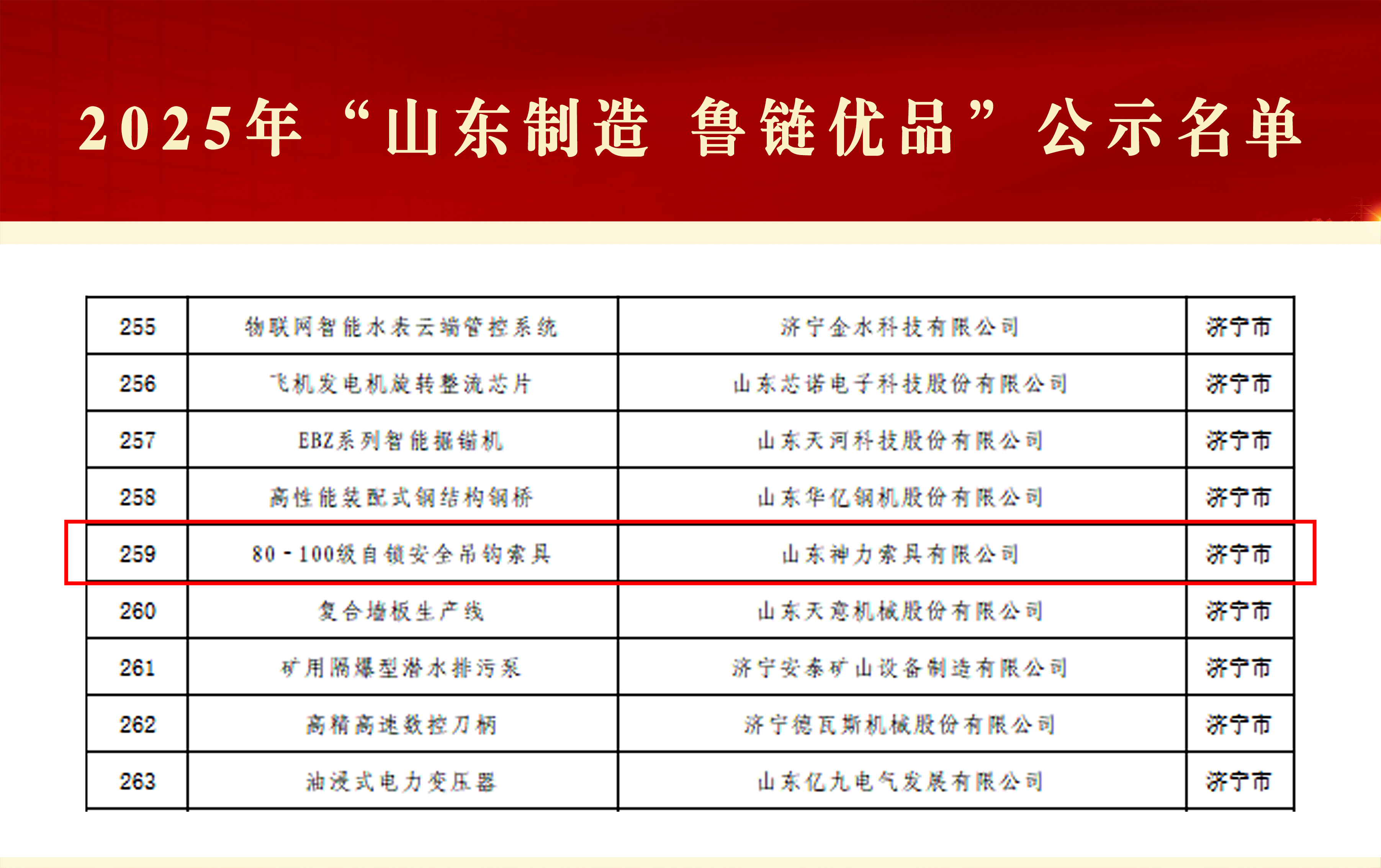 近日,2025年山東制造魯鏈優(yōu)品首批名單正式公示,山東神力索具有限公司憑借卓越的產(chǎn)品質...